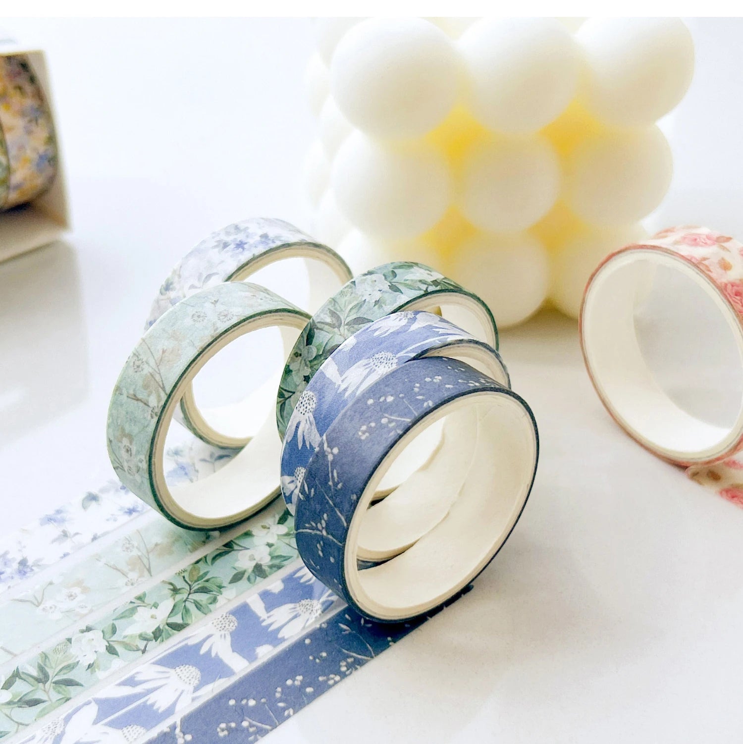 Discover your perfect floral story. This collection isn't just one style; it's a whole garden of possibilities! Each set includes five perfectly coordinated rolls of washi tape, curated to tell a unique story. Will you choose the set with lush green botanicals, the one with dreamy watercolor blooms, or the one filled with delicate vintage wildflowers? With so many beautiful themes to explore, you can find the perfect palette to inspire your next project.