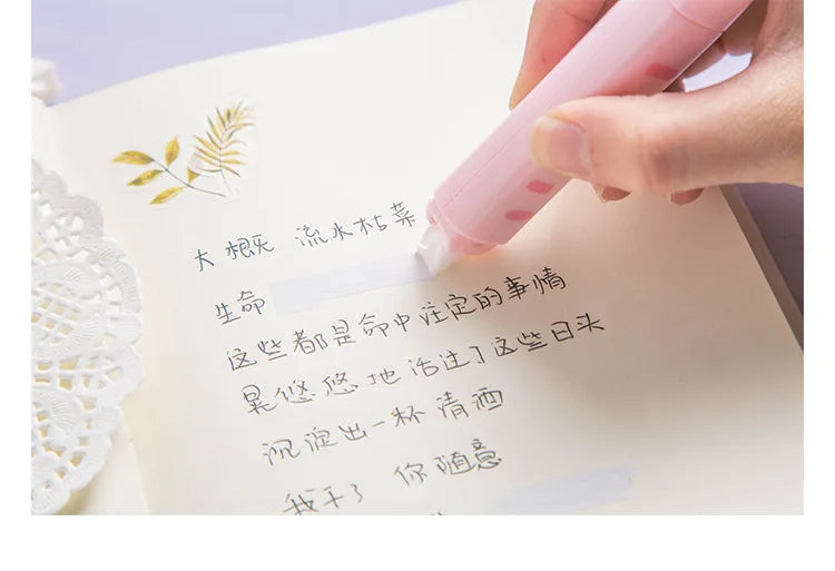 Imagine you make a small mistake in your notes. Instead of searching for white-out, you simply uncap the cute paw and glide on a smooth layer of correction tape. Then, when you want to stick a receipt into your journal, you just flip it over and use the instant glue tape. It's that easy, that clean, and that cute!