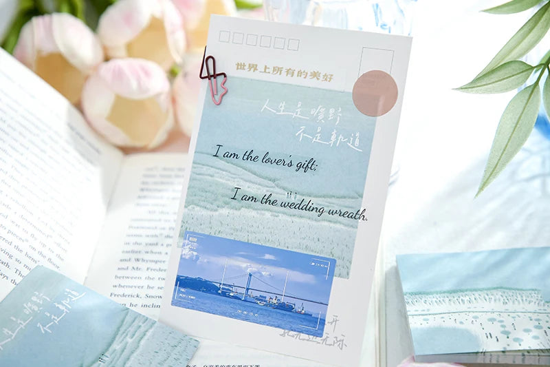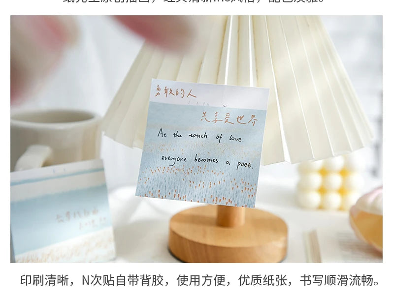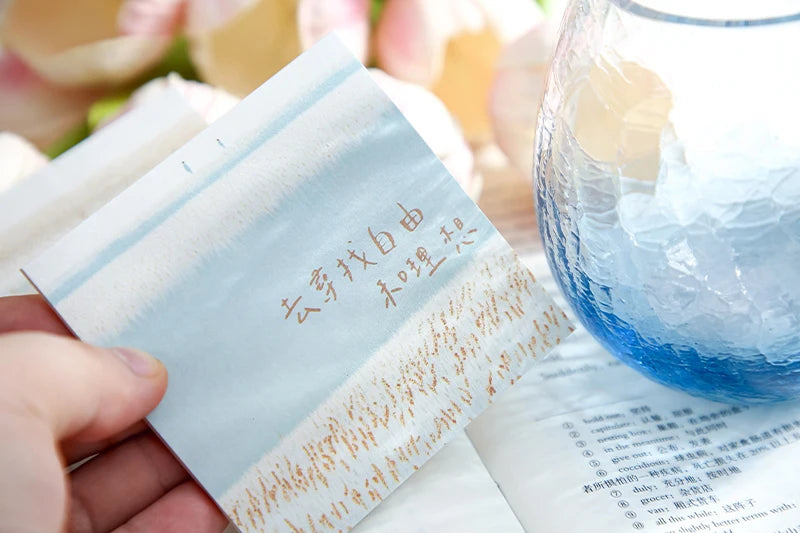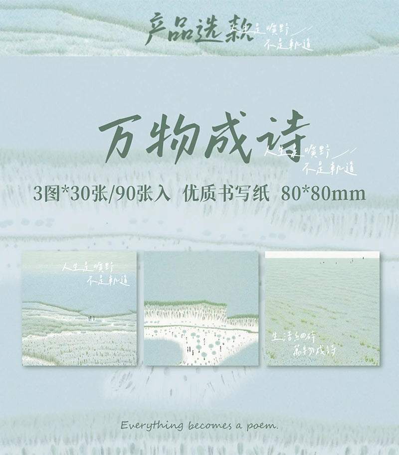 Feel the day's stress melt away as you gaze at these calming, nature-inspired designs from the "Breath of the Wilderness" collection. Each pad is like a little window to a tranquil world, designed to bring a breath of fresh, creative air to your desk, planner, or journal. The gentle blues, misty greens, and warm, earthy beiges are a feast for the eyes, turning even a simple grocery list into a thing of beauty.