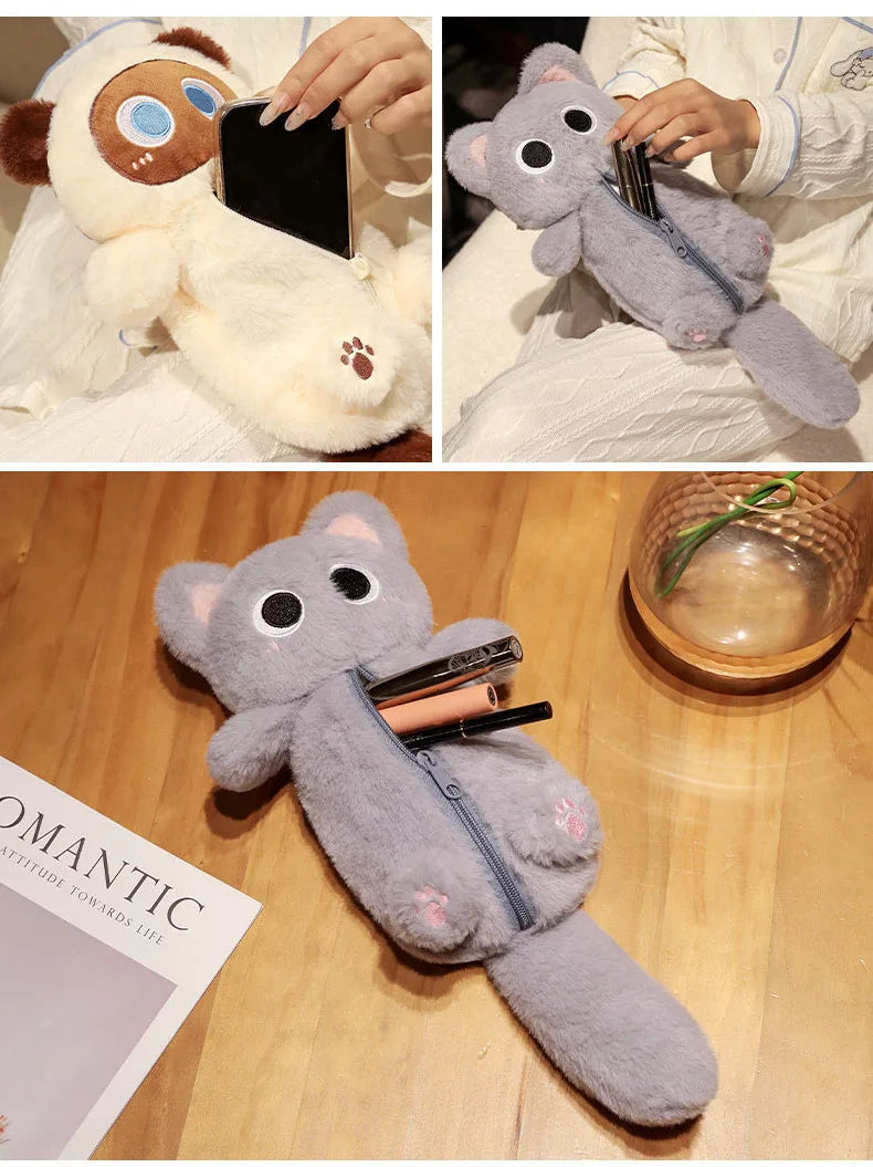 Say hello to your new favorite desk buddy: Huggy Snuggle Cat Plush Stationary Pouch!