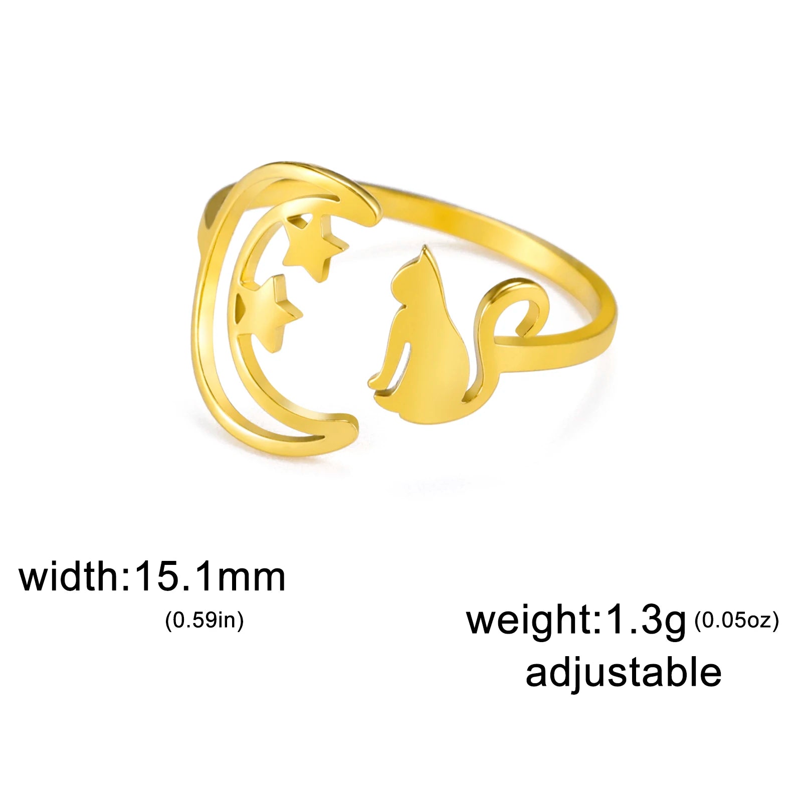 As a perfect addition to your collection or a thoughtful present, this cute animal open finger rings jewelry gift is a wonderful choice for any occasion. Treat yourself or the cat lover in your life to this beautiful piece of wearable art: Moonbeam & Stardust Meow Stainless Steel Ring. Add this celestial treasure to your cart today!